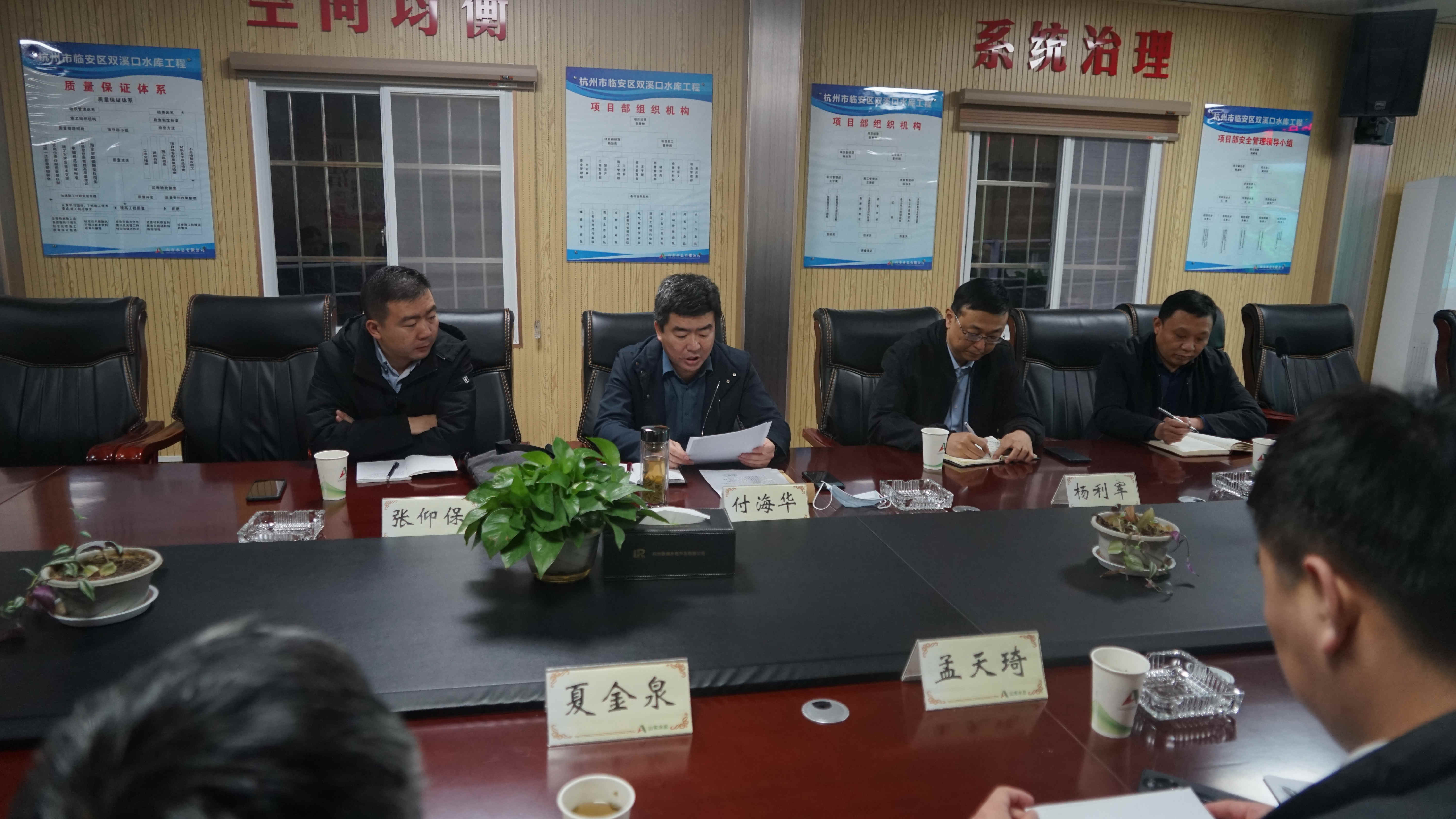 会上,调研组听取了鲁润公司和项目部负责人的工作汇报,对双溪口水库工程各项工作给予了充分的肯定。杨利军要求鲁润公司进一步健全财务内控制度,完善财务管理体系;付海华要求鲁润公司在主动作为中抓住机遇,以公司提级管理为契机,将双溪口水库打造成山东水总深耕浙江市场的“桥头堡”和“金字招牌”。