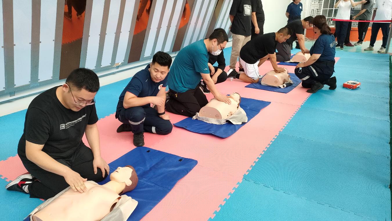本次演练第一项为CPR(心肺复苏技术)和AED(体外自动除颤技术)施救培训,让全体人员了解和掌握急救的基本知识和应对方法。第二项为医疗急救演练,场景模拟施工人员受伤,开展止血包扎及抢救伤员,提高应急快速反应能力和果断处置能力。第三项为消防安全演练,涉及烟雾模拟逃生和消防水带灭火使用,做到学用相结合;增加低楼层逃生及高空缓降演练,利用绳索及布条等工具进行逃生演练。