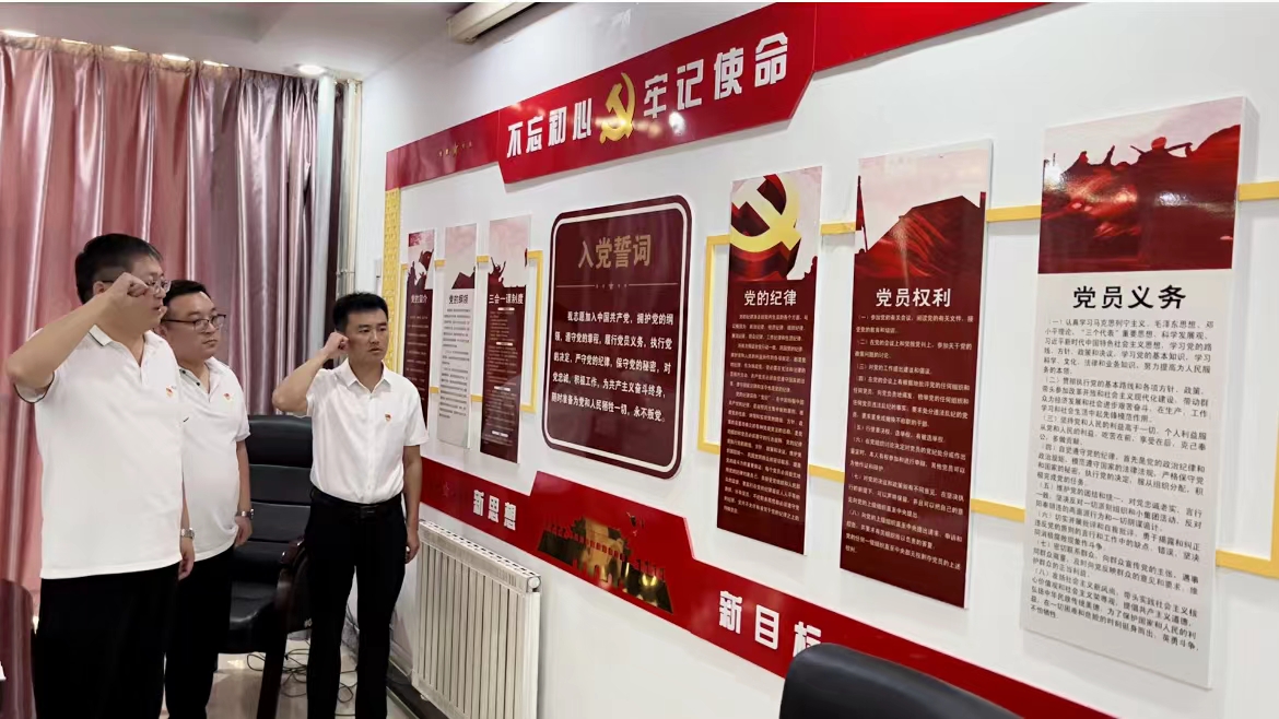 支部书记王传波对李灏、刘波两位同志表示衷心的祝贺并提出新的要求和期望,希望他们在今后的工作和生活中处处以共产党员的标准严格要求自己,立足本职岗位创先争优,充分发挥模范带头作用,以实际行动为党旗增添光彩;并带领他们进行了入党宣誓。最后他强调,全体党员同志要不忘初心、砥砺奋进、逐梦前行,以最饱满的热情迎接党的二十大胜利召开。