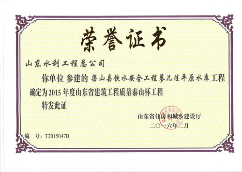 梁山县饮水安全工程蓼二洼平原水库工程