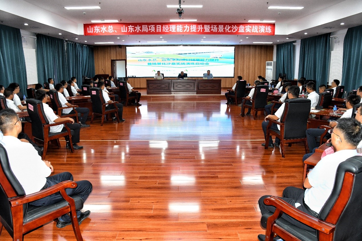 为全面落实集团公司“质量月”行动部署,着力锻造“懂技术、会管理、善创效”的复合型项目经理队伍,近日,公司携手山东省水利工程局有限公司成功举办为期四天的“项目经理能力提升暨场景化沙盘实战演练”专项培训。公司党委委员、副总经理袁英杰,党委委员、副总经理杜贞义,山东水局总工程师谢元响出席开班仪式,来自两家单位的60名项目经理及业务骨干参加培训。